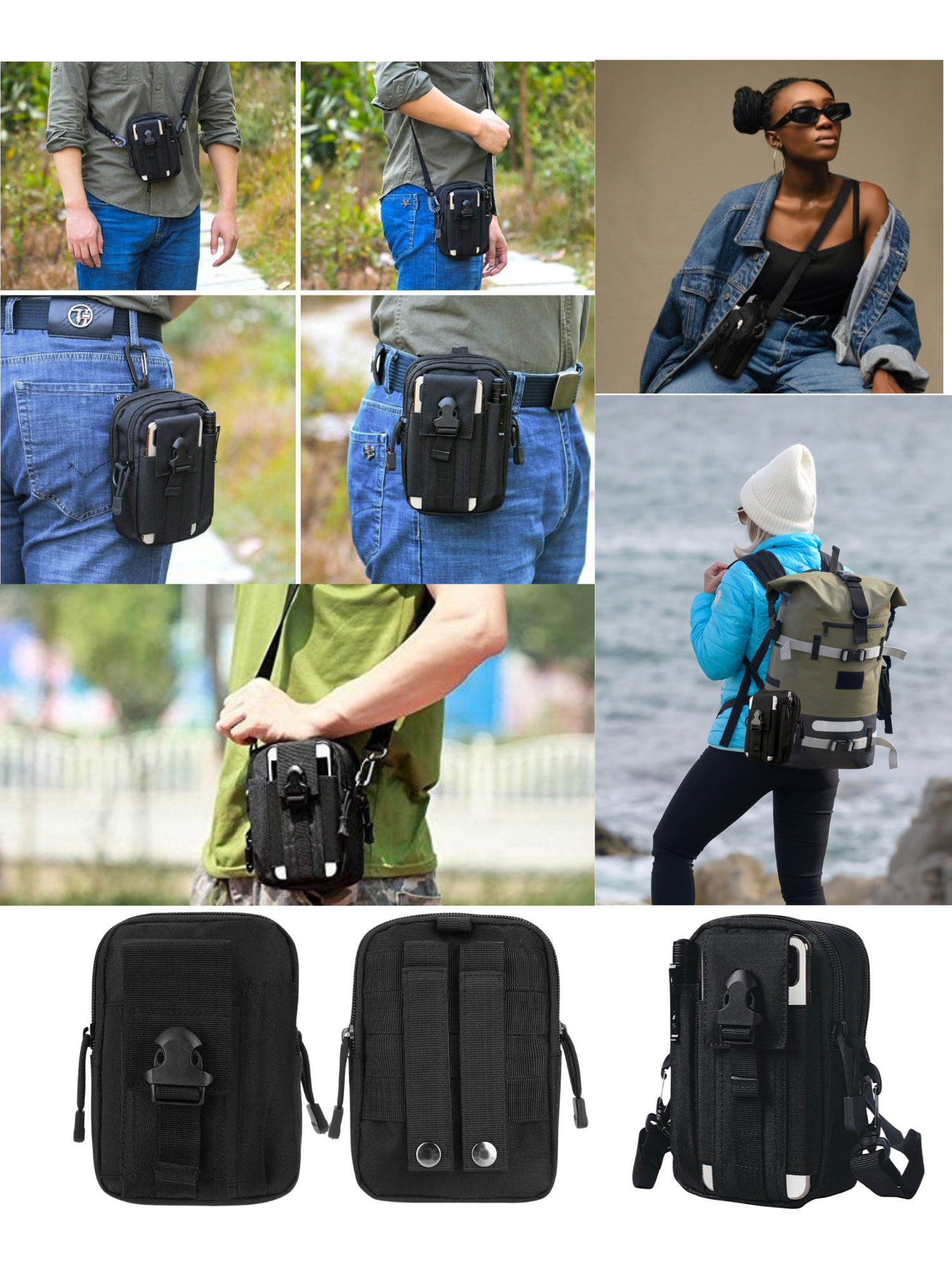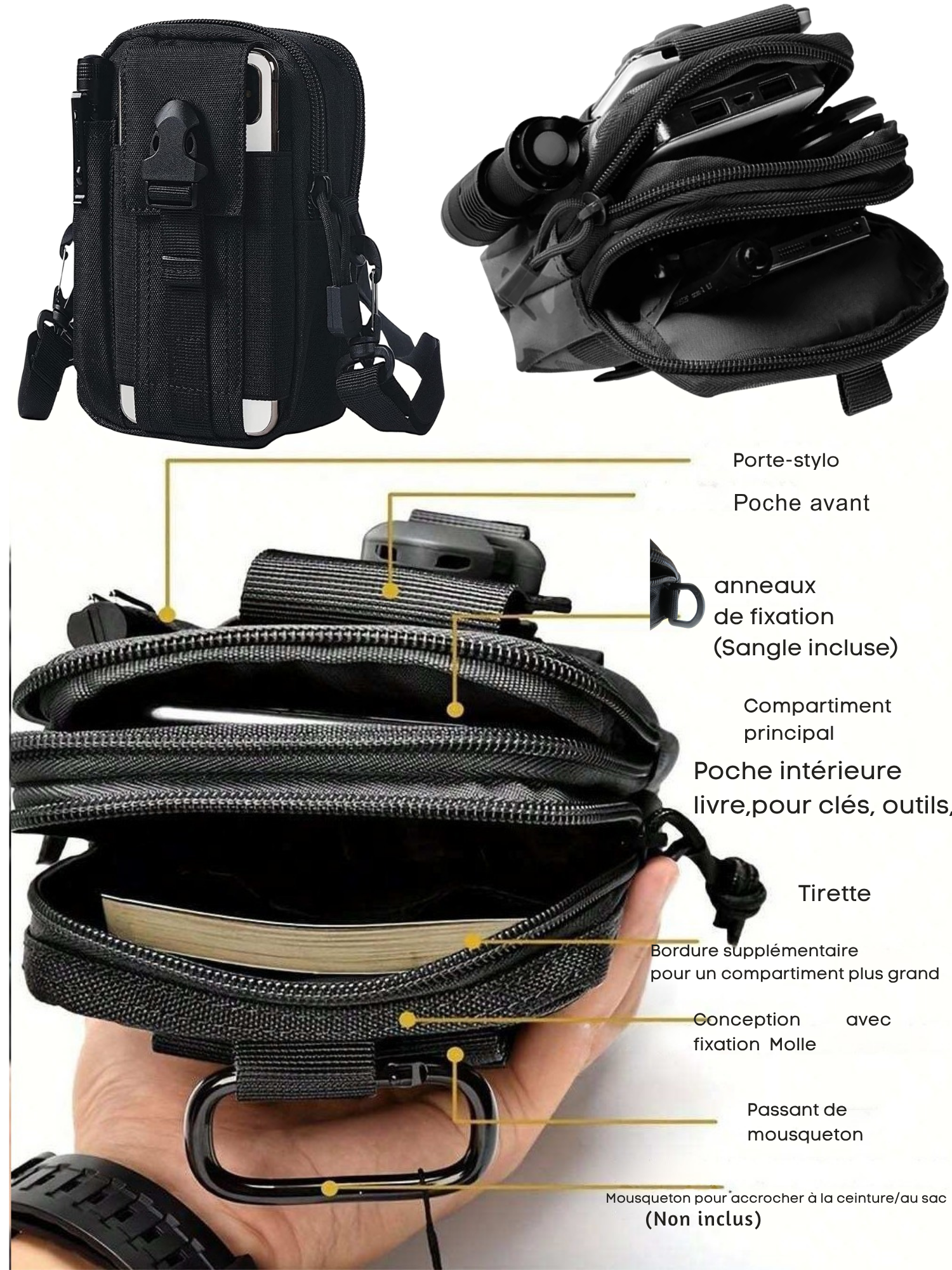 Se porte à la ceinture, en bandoulière ou à la main.