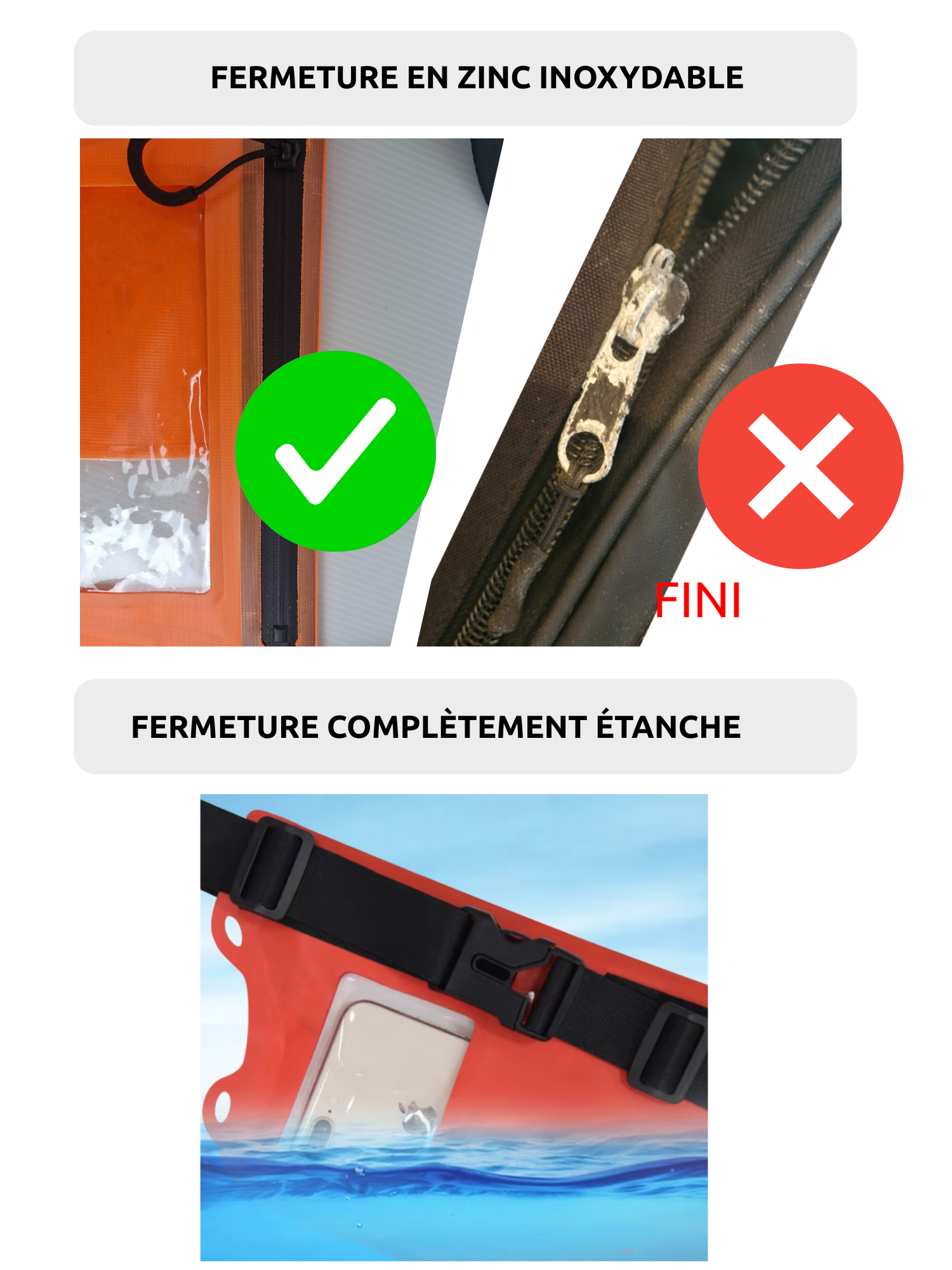 🌊 Pochette Ă©tanche tactile Fermeture en ZINC anti-rouille 🔒 TĂ©lĂ©phone & effets perso protĂ©gĂ©s. IdĂ©ale paddle, kayak, longe-cĂŽte.