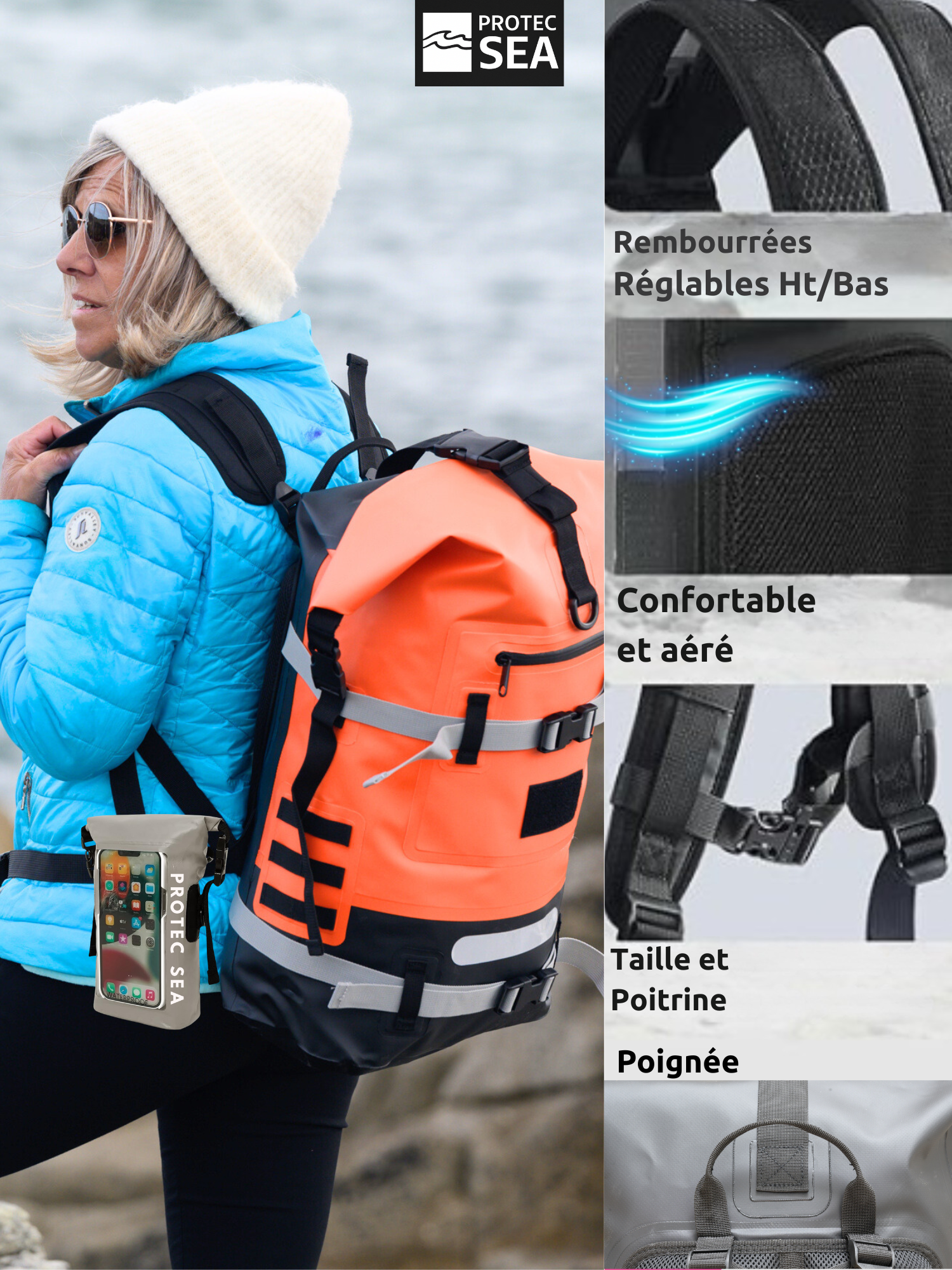 💧 100 % waterproof (IPX6) – PVC marin haute résistance , nautisme, randonnée, camping voyage.